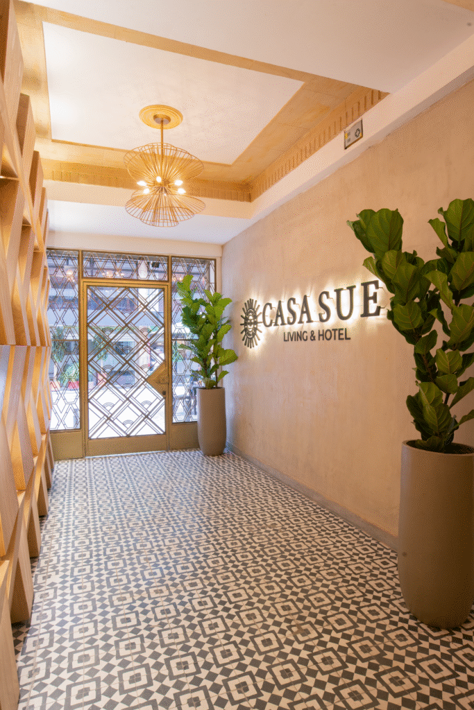 Tras un proceso de restauración minuciosa, el edificio conserva elementos arquitectónicos originales, como su fachada en piedra y detalles decorativos que evocan su valor patrimonial. Hoy, bajo el nombre de Hotel Sue, este espacio recupera su esplendor y ofrece a los visitantes una experiencia que entrelaza la comodidad moderna con la riqueza cultural ancestral, incorporando símbolos de la cultura muisca y precolombina en su diseño.